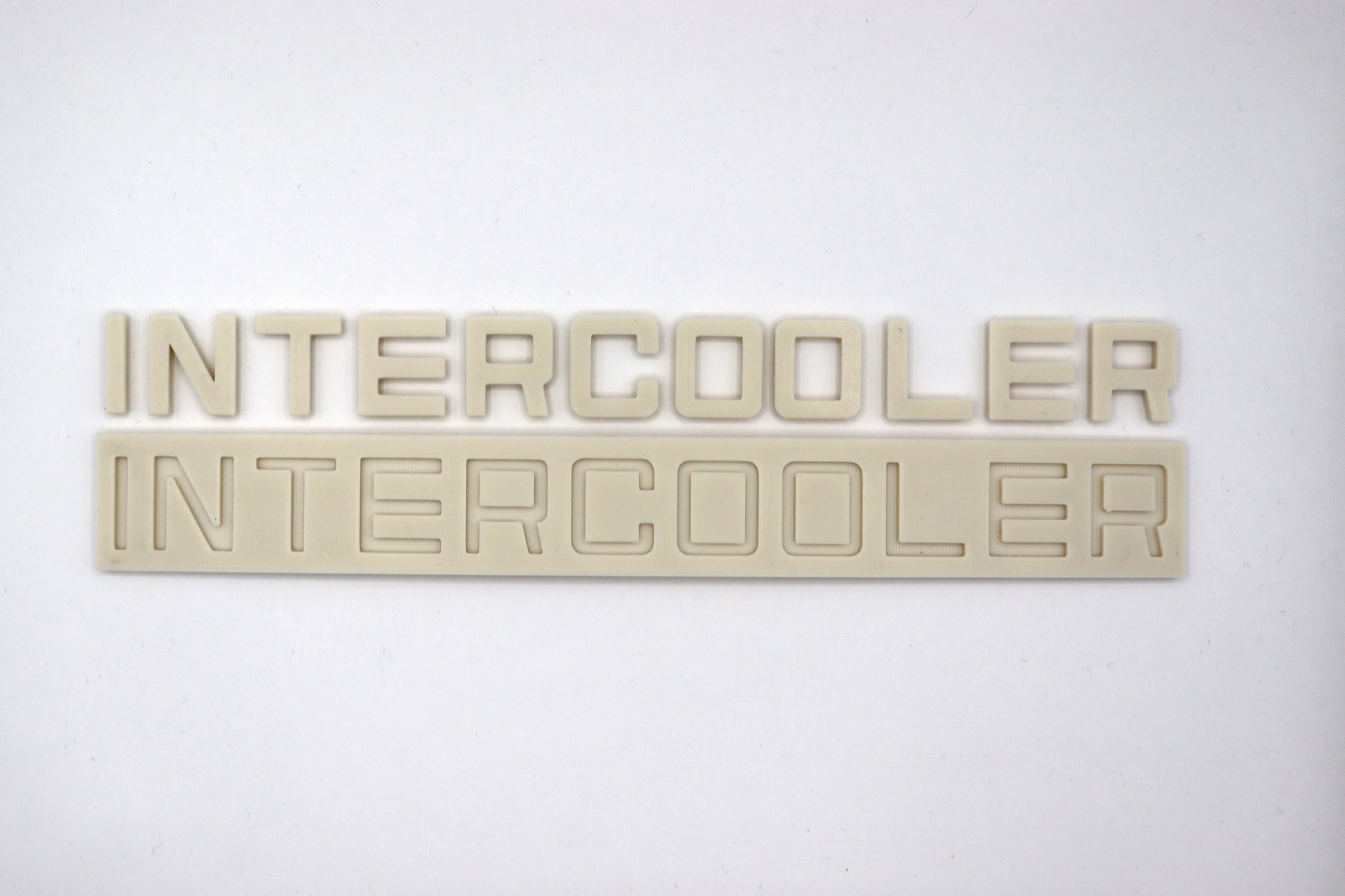 dit 3D geprinte intercooler bordje word geleverd in een neutrale kleur, zodat het in elke gewenste kleur kan worden gespoten.