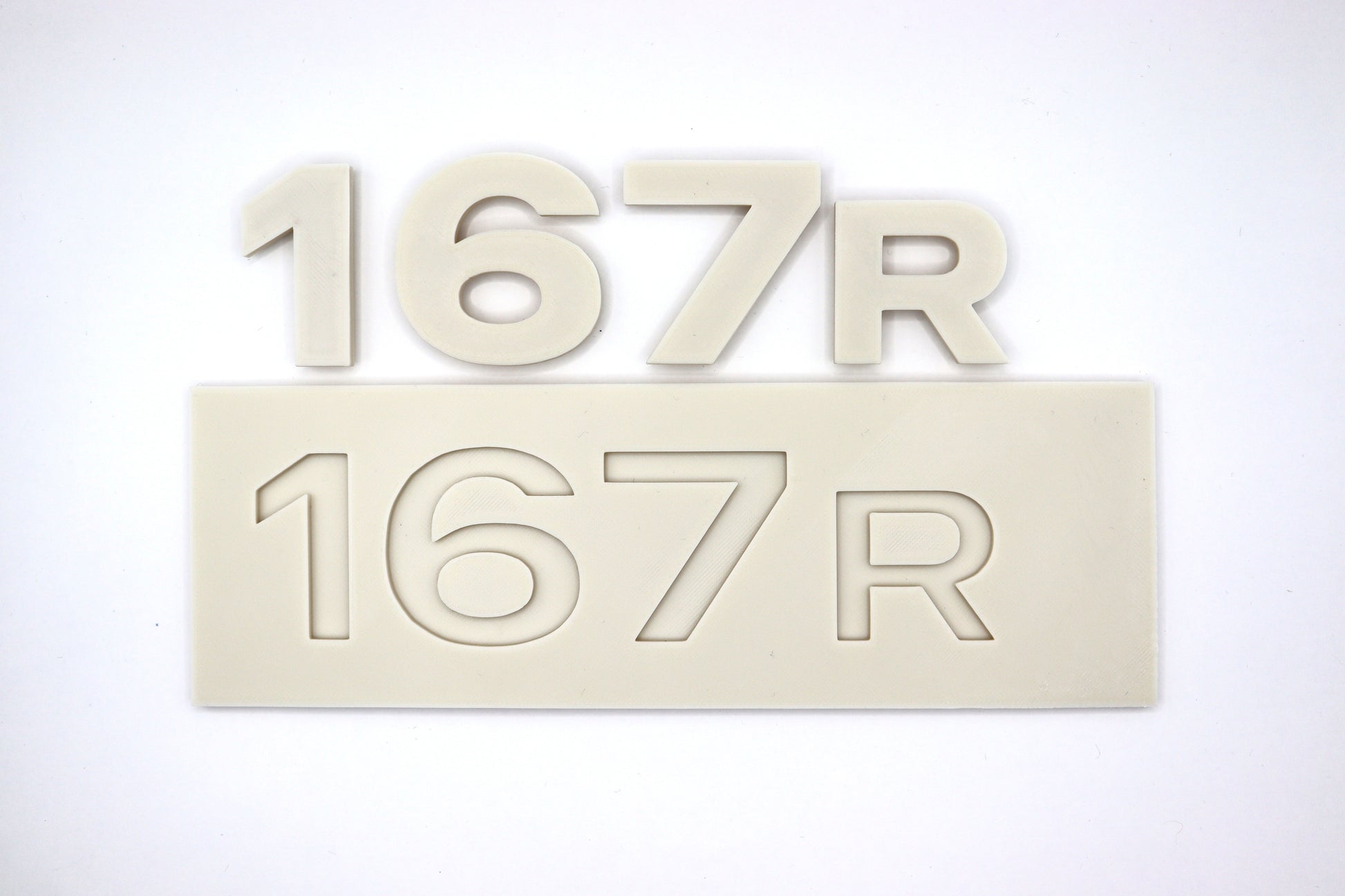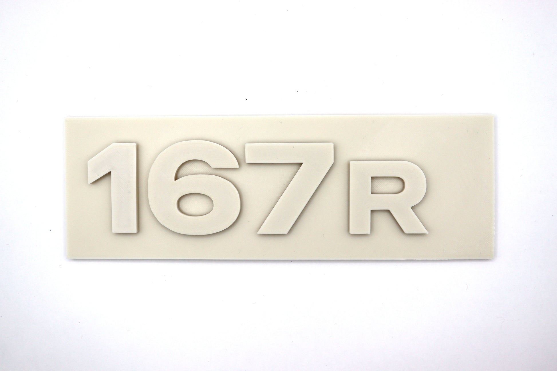 Dit 3D-geprinte 167 R typeplaatje wordt geleverd in een neutrale kleur, zodat het eenvoudig in elke gewenste kleur kan worden gespoten. Het ontwerp is geïnspireerd op de klassieke Scania 4-serie, voor een oldskool uitstraling.